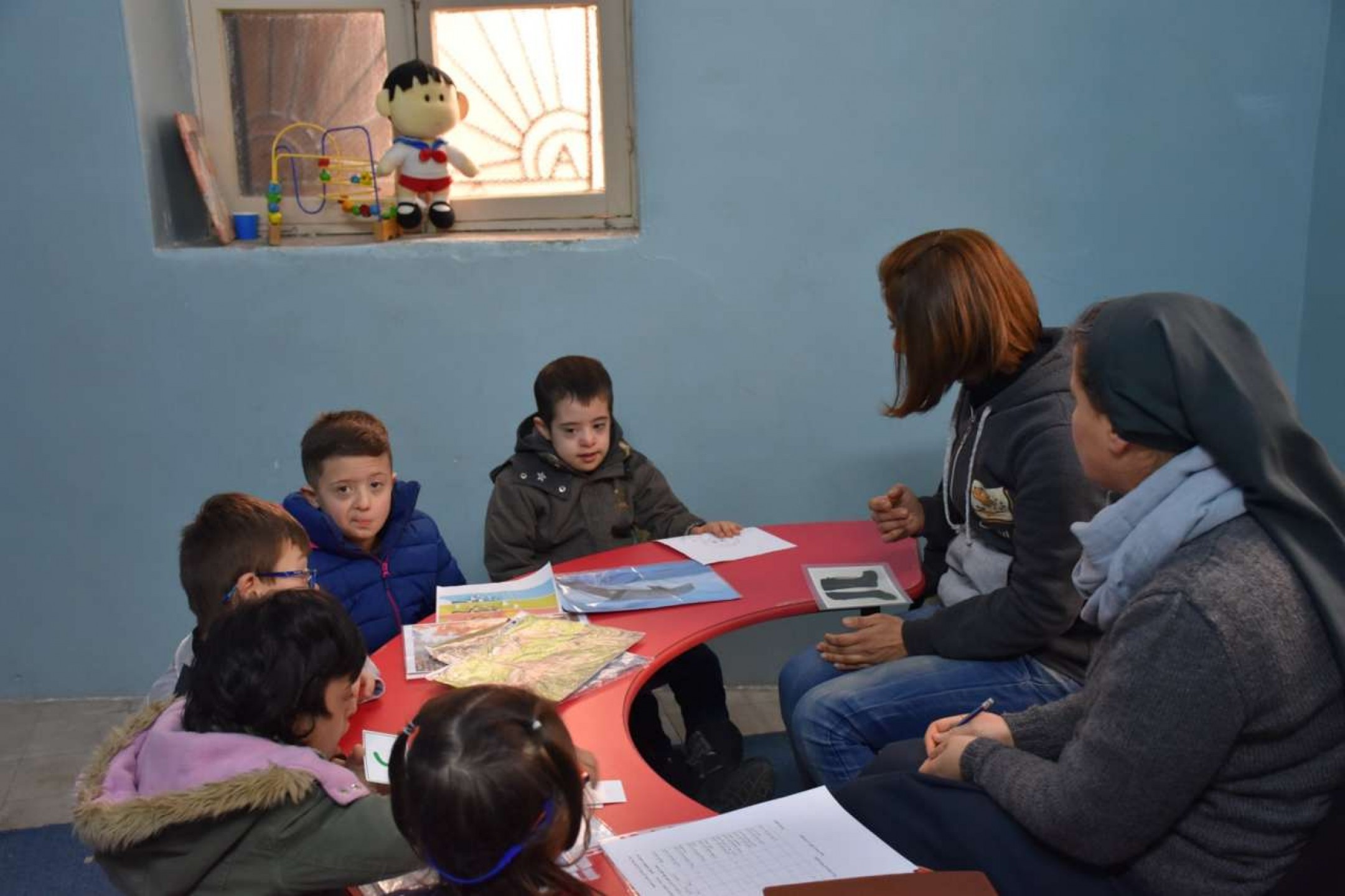 Trotz der vielen Herausforderungen kümmert sich das Team von «Le Sénevé» in Homs weiterhin mit t Hingabe um die geistig beeinträchtigten Kinder, die ihm anvertraut wurden. Ebenso werden die Eltern begleitet, die sich oft überfordert fühlen.